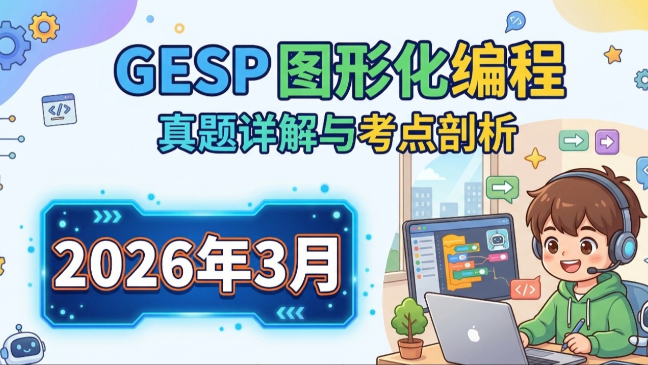 本文提供2026年3月GESP图形化编程三级完整真题试卷,涵盖单选题,判断题、编程题三大题型,附带标准答案及超详细逐题解析。适合备考GESP三级的Scratch学习者、编程机构教师、家长辅导使用。